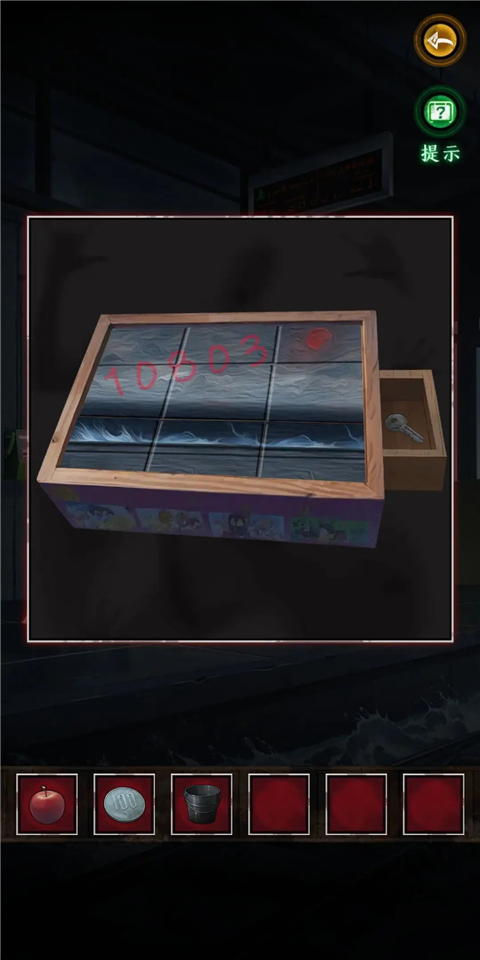 10、用钥匙打开候车室,根据饮料的摆放位置调整箱子,得到小刀