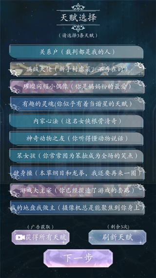 3、选择自己的天赋,在养成过程中会给予很大的帮助