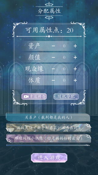 5、进行属性点的分配,属性点决定了角色的养成方向,每一次事件选择都会基于属性点给出结果