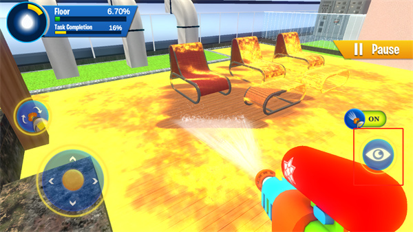 6、右边喷头按钮可以控制水枪的开关;