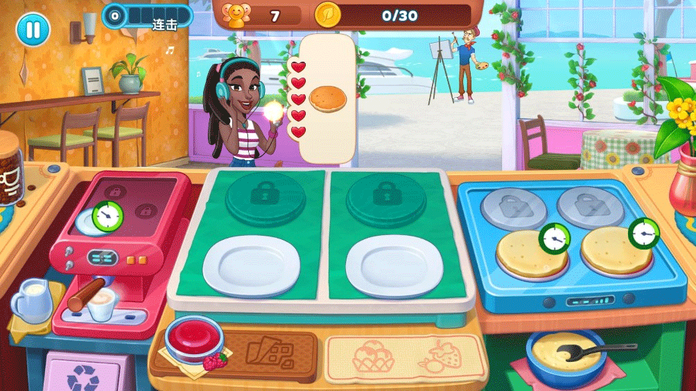 3、顾客来店后,玩家需要根据顾客的订单制作美食,并需要在顾客的耐心值消耗完之前将正确餐点交给他;