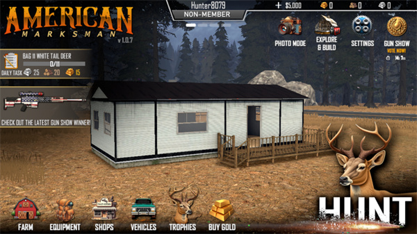 1、打开美国神枪手游戏,点击右下角的“狩猎”。