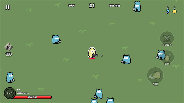 5、进入游戏后,玩家通过滑动屏幕来控制角色移动,点击右边的攻击按键进行自动攻击。角色会自动射击靠近的敌人,玩家只需专注控制角色移动和躲避敌人的攻击。