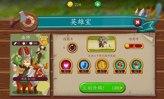 首先,金币可以用来升级英雄的技能,如图1所示。初始状态下,英雄的技能是有限的,或是非常低级的,要想让英雄更加强大,您可以使用账户的金币给自己的英雄升级哦!