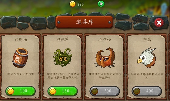 金币还可以用来兑换道具,如图2所示。在不同的关卡会出现不同的道具,但是道具并非免费使用哦,您需要使用您的金币进行兑换。