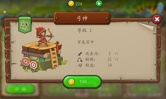 初次之外,金币还可以升级武器哦!如图3所示。初始状态下,武器库里的武器攻击力、射程和射速都是非常低的,您可以使用金币提升武器等级的。