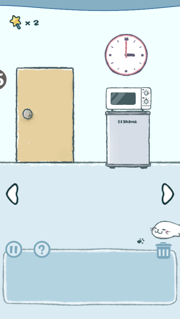 20、把猫毛放进大叔的帽子里,从大叔头上的帽子找到左边房间的按键,然后从柜子门后找到魔法棒,把大叔变成猫。