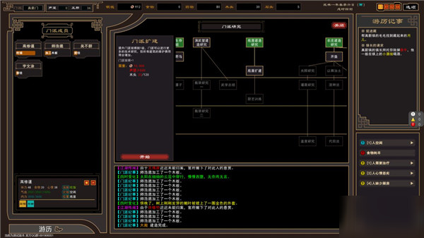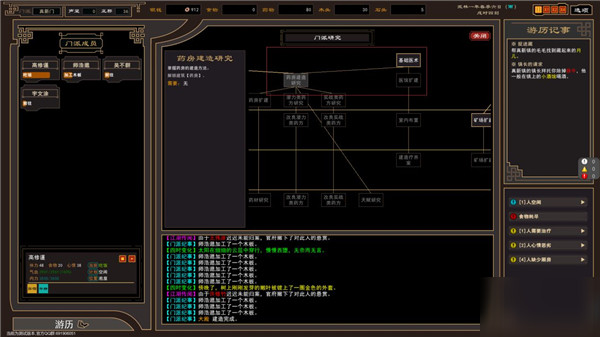 2、想要有更多人的话需要先建造大殿,当你声望到达200之后就会有人来了(完成新手任务就200了),大殿里面还可以进行研究,要注意研究界面是可以往右滑动的(我都是玩了很久之后才发现的)