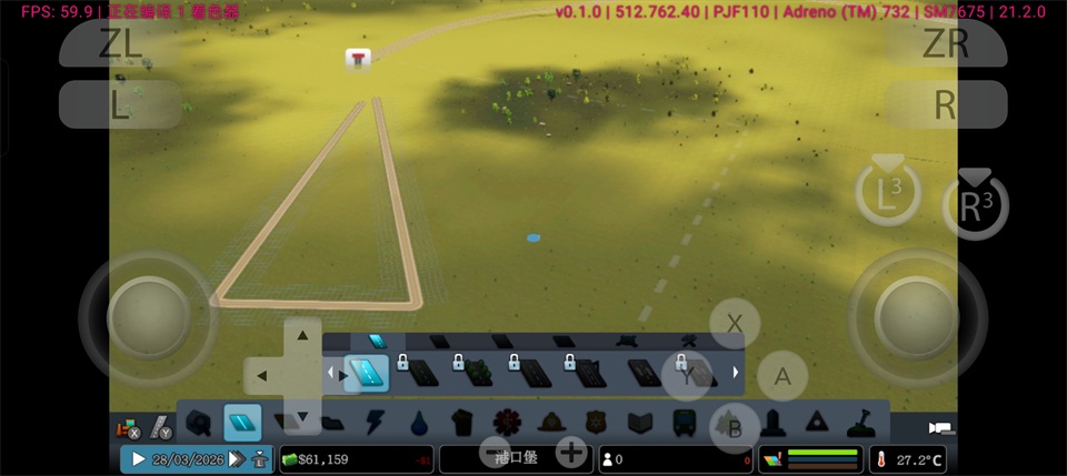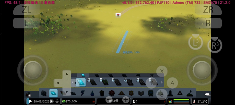 5、选好建筑后按A键开始铺设道路,完成后再按A键确认结束。若中途铺错,可按B键取消重来。