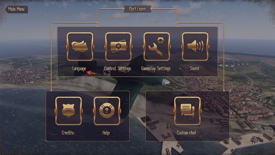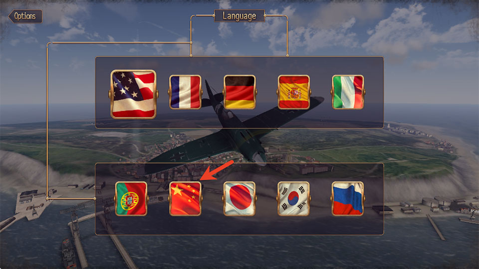 3、点击箭头所指位置即可将游戏语言切换为中文。