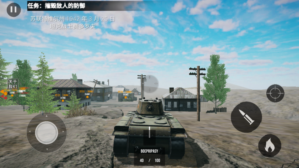 4、本任务中驾驶的坦克配备火焰喷射器,可用于破坏敌人的防御工事,打开进攻缺口。