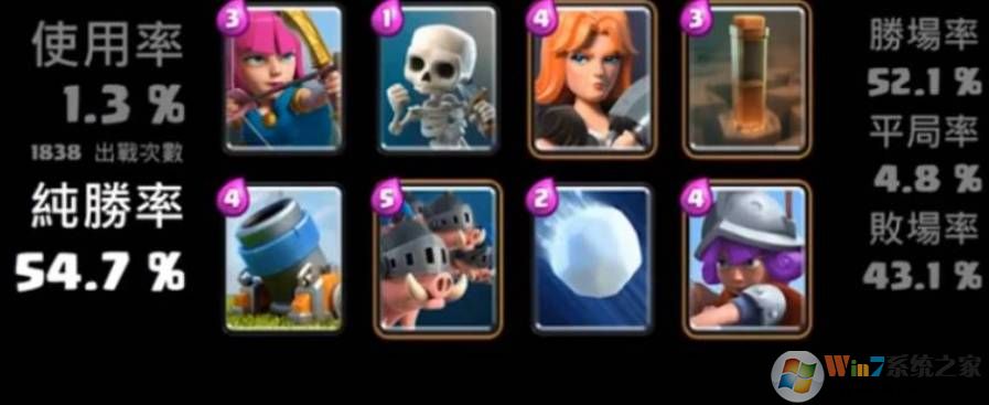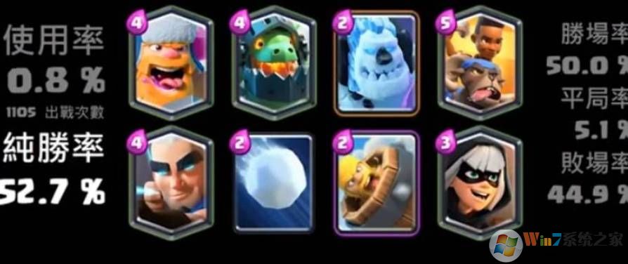 这一套卡在地震出现后也慢慢的流行了起来,现在已经有了不少的玩家用这一套卡组打上天梯排名前列的位置。这套卡在此次的4套卡组中属于操作难度较高的,不过进攻有地震和雪球也挺无赖,很容易一波打出很高的伤害。防守主要依靠火枪手和小皮卡的强力输出,如果遇到天狗这种卡组就比较难打,不过操作到位还是有一战之力的。