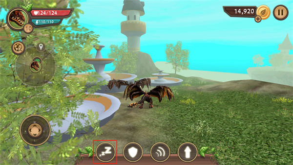 游戏中我们要控制一头龙在天空中飞行以及捕猎,想起来就让人觉得不可思议,不过操作的过程倒也并不困难,玩家们按住屏幕左下角的摇杆即可控制飞龙移动方向,右下角则有普通攻击、技能攻击等按钮,玩家们通过这些按钮控制飞龙的捕猎过程。游戏操作起来不算难,不过也要玩家们很好的控制能力才行,毕竟要同时控制上下飞行以及前后左右的转向,另外攻击目标的时候还要注意人类魔法师的攻击,所以想要流畅的控制起来,还是需要多多练习才行。