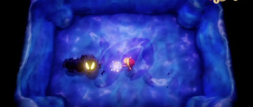 第五阶段是一个黑球,同样是朝我们冲过来,速度有点快,不过不用担心,直接用魔法杖对着BOSS攻击就行,BOSS受到攻击会消失,然后在别的地方出现重新向我们冲过来。