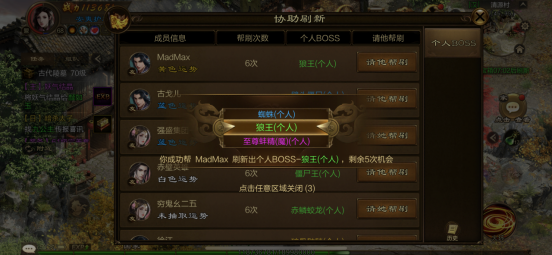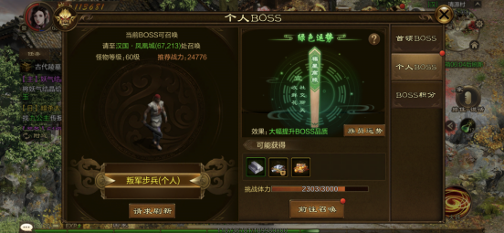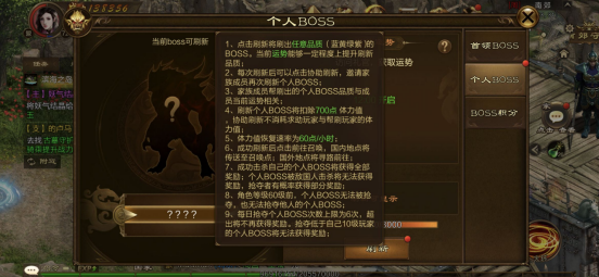如果你等级比较高,但是战力略低,打个人boss是一件比较耗时间的事情。特别是个人boss的难度会因为boss本身的品质越高变得越难击杀。此外,个人boss击杀是有时间限制的,超过10分钟就会默认击杀失败。被敌国玩家击杀,奖励也会被抢夺。