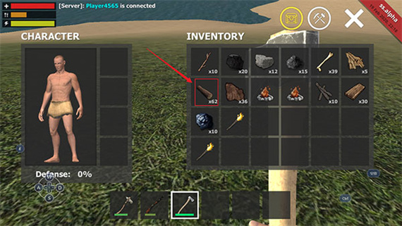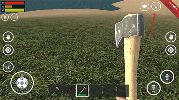 1、在野外生存模拟器游戏中点击左上角的背包图标。