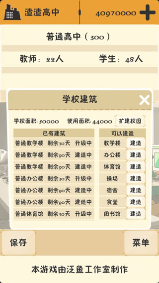 5、在游戏中你需要加强师资力量,努力的培养学生,学生们考得好,有好的大学上,你的学校才会更加出名。