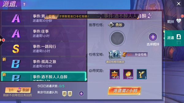 3、每天这两样做完,开始点羁绊,放出去,刷的早,能早点刷新任务。
