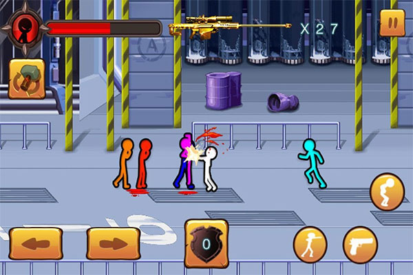 1、对于火柴人系列的画面表现大家就不要太过于在意了,毕竟主角都是火柴棍的模样,难道还指望着背景多么华丽精致么。游戏中的背景描绘虽然称不上精致,但也能表现出足够的用心,主角们也是简单的火柴棍形象,但是这一点也不影响打斗过程的激烈状况,各种酷炫的动作招式,配合上血腥四溅的攻击效果,着实给人一种真刀真枪的格斗感觉。