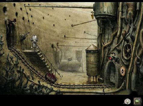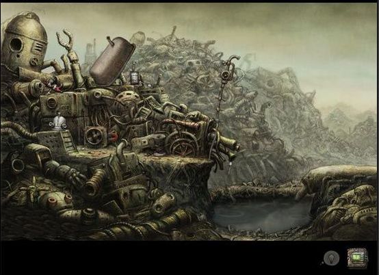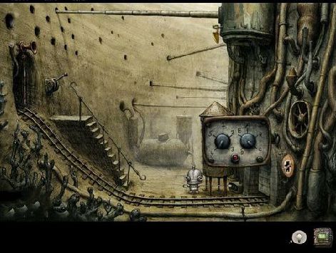 1、陈旧锈蚀却又格外亲切的城市游戏中的解谜要素在《Machinarium》中的机器人们看起来意外的老旧、锈蚀,却因手绘的关系而让人感到独特的亲切感。这个城市里看起来一片和谐,也充满惊奇。