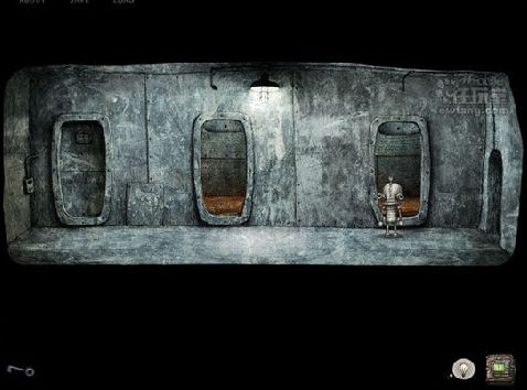 开场的动画,已经暗示我们必须从右上角的管道出去,很明显,我们需要到上面去!但是最右侧有个门,而且墙上有把钥匙,是不是有钥匙可以开启门呢?先试试,好像不行,钥匙留着再说!
