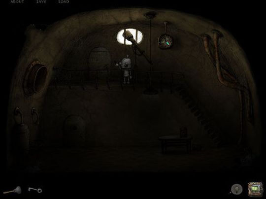 总结:在第一章中,游戏基本上已经告诉了我们所有的基本操作:点击开关或者道具(收集),拖动道具到需要使用的地方,或者拉长(缩小)主人公!当然还有右下角的两种帮助系统!灯泡(当前场景关键事件提醒)带问号的机械书(需要玩个简单的小游戏,过关后就能查看本关具体的所有事件操作指南!)