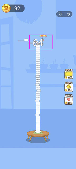 3、此外,如果小伙伴们金币(也就是游戏中的豆腐币)比较充足的情况下,还可以选择金币豆腐,即豆腐层数越高金币越多;双倍的分,即豆腐层数越高分数越高;以及平缓豆腐,即豆腐伸过来的速度变慢。