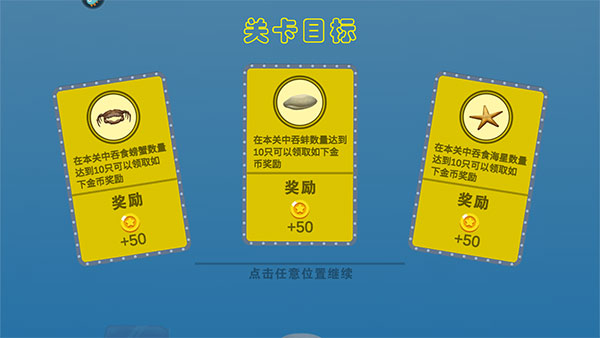4、玩家在该关卡让小鱼吃遍所有的物体即游戏结束,而游戏结果则是按吃完所有种类的物体所用的时间,和每种物体的数量来计算。