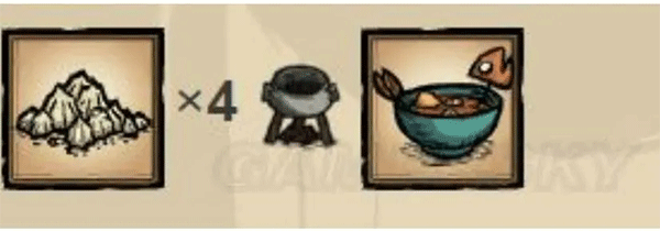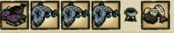 一个肉加3条鱼或者两块肉加两条鱼就可以制作海难最容易做的回血回san值神级食物了,肉可以是怪物肉,但是只能用肉类,中间不能加素菜,蛋也不行。