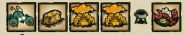 没错,饥荒回血回san的超级食品,一只活龙虾(死龙虾放不进锅里)加一块黄油,加填充物,不一定像图里一样要蜂蜜,只要不是肉类和冰就可以搞出来了,黄油比较难搞,所以不推荐。