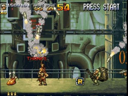第二段:会从上面放出一个大导弹来根踪你,还有上面会出来小兵,下面也会来个拿步枪的小兵,这里其实很好过,开始先向上开枪干掉小兵,等导弹出来后既可跳起来用枪打掉,下面拿步枪的小兵快点解决,记住这里上面的小兵是没有分的。