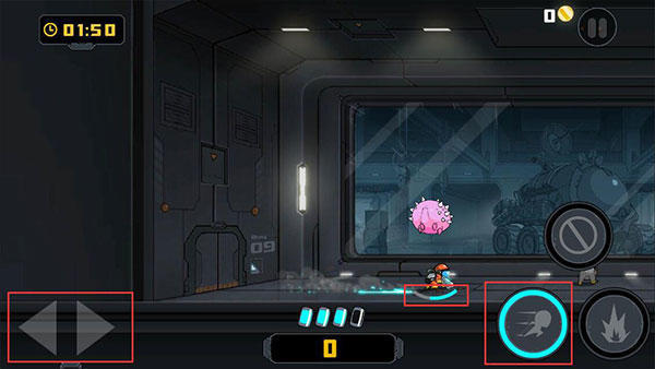 5、左下角控制人物的左右移动,本游戏属于横板射击类,玩家无法