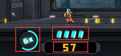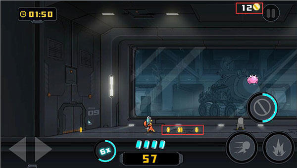 6、右上角显示的是玩家在关卡中获得的金币数量,拾取金币不光可以增加游戏分数,还可以在通关后升级角色属性,但要注意的是,掉落的金币有时间限制,请尽快拾取。