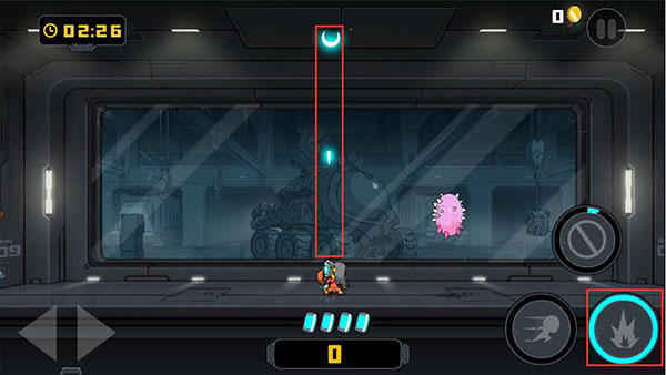7、右下角是主要的战斗按钮,包括射击和必杀技按钮,玩家可以长按射击按钮,但射速受到枪械属性的影响,你可以通过消耗金币来进行升级枪械,提升射速和伤害。