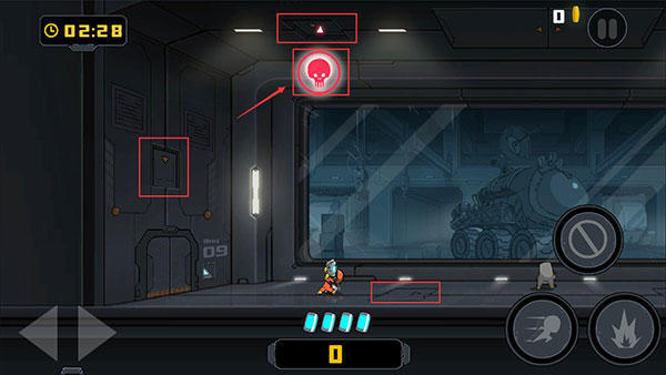 10、关卡场景内会有若干个标有黄色三角形的舱门,这些舱门是怪物们的出现口,当怪物将要从舱门出现的时候,会有红色警示标志,请保持一定的安全距离。