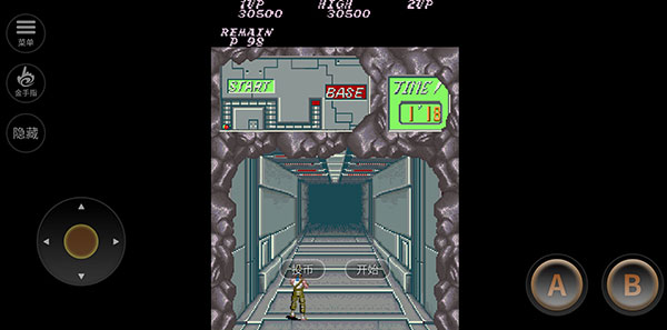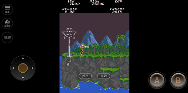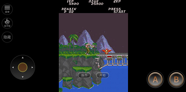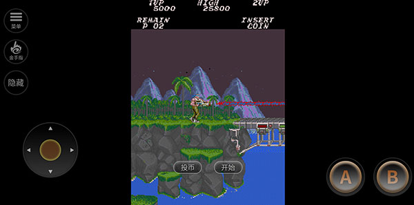 1、首先打开魂斗罗无敌版,点击投币,再点击开始游戏;