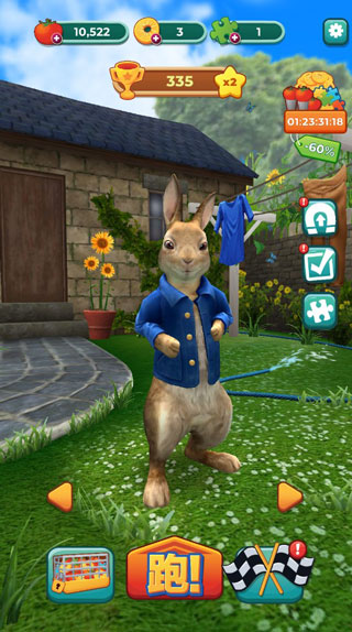 4、比得兔和他的朋友们正在奔跑,加入这顽皮的一群,一起在全国冒险,开始疯跑起来。