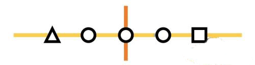 如下图,中间站换乘,可以适当适用。当线路充裕时,可以有一条或两条△○○○○。