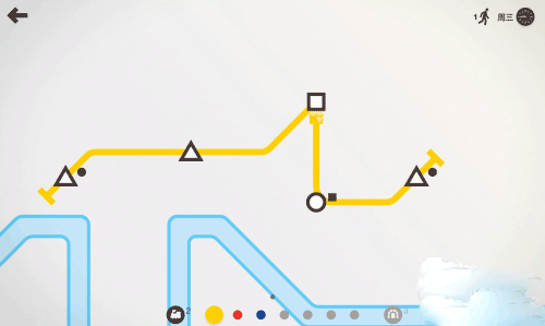 1、地铁站台,不同的形状代表不同性质的地点,站台旁边的小图形方块代表乘客的数量以及乘客的目的站台;2、时间,当时间经过一周将会获得资源补给;