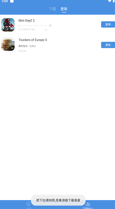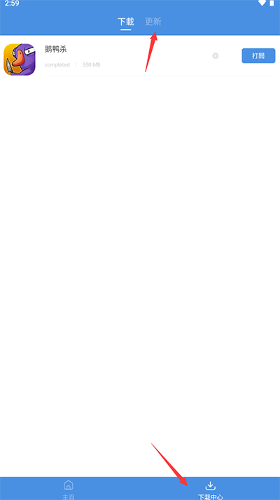 1、打开gamestoday官方版后,点击右下方的下载中心,上方会有更新按钮点击。