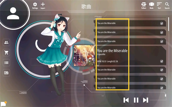 4、具有丰富自定义元素的音乐节奏手机游戏。玩家可以将自己喜欢的本地歌曲导入此手机游戏;