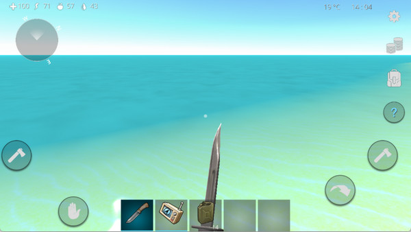 4、好啦是时候看看大海了~不知道有没有鲨鱼呢?另外点击斧头按钮可以挥动手中的武器哦!