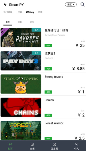 6、在这里你可以超低价购买游戏,超低折扣购买游戏cdke,还有安全可靠的steam充值卡等全方面低价购买体验。