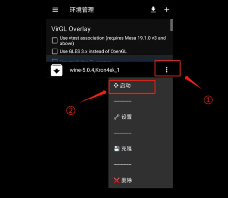 12、再回到模拟器界面,发现下方wine-5.0.4处多了三个点,点击后选择【启动】。