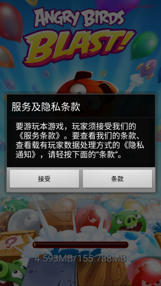 1、从本站下载并打开游戏,点击接收条款