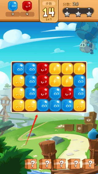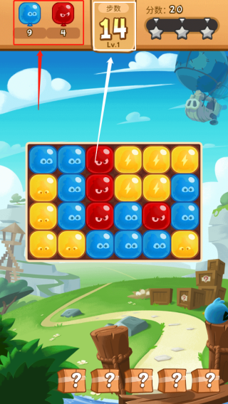 2、进入游戏,红框中是该局游戏需要收集的气球,白框中是可行的步数