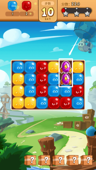 4、一次性消除五个同色会触发特殊道具,将两个“道具”消除,可变成威力更大的道具