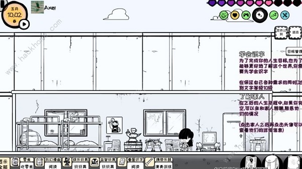 左数第三个娱乐:很多事情都可以提高,但不知道是bug还是设定,玩玩具不能提高反而降低。另阅读部分书籍时会出现先上升后下降。