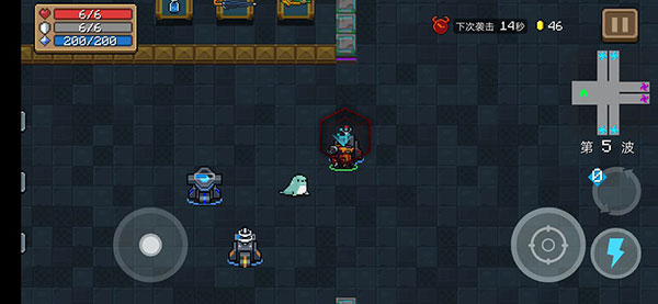 楼上这两位NPC,左手边是工匠,可以花费一定金币提升你手里武器的属性值(就是强化啦),价格与武器已强化次数和品质有关。右手边是神秘商人,每一波结束后会刷新商店,商品需要金币购买,一般是一瓶药+两把武器,出售的武器品质会随波次增加而提升。