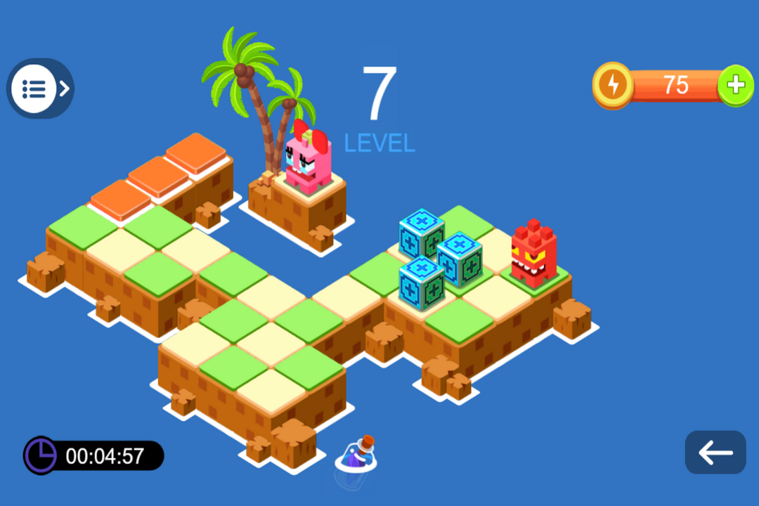 2、进入关卡之后,玩家需要把箱子推到指定位置才可以救出小伙伴,才可获胜。